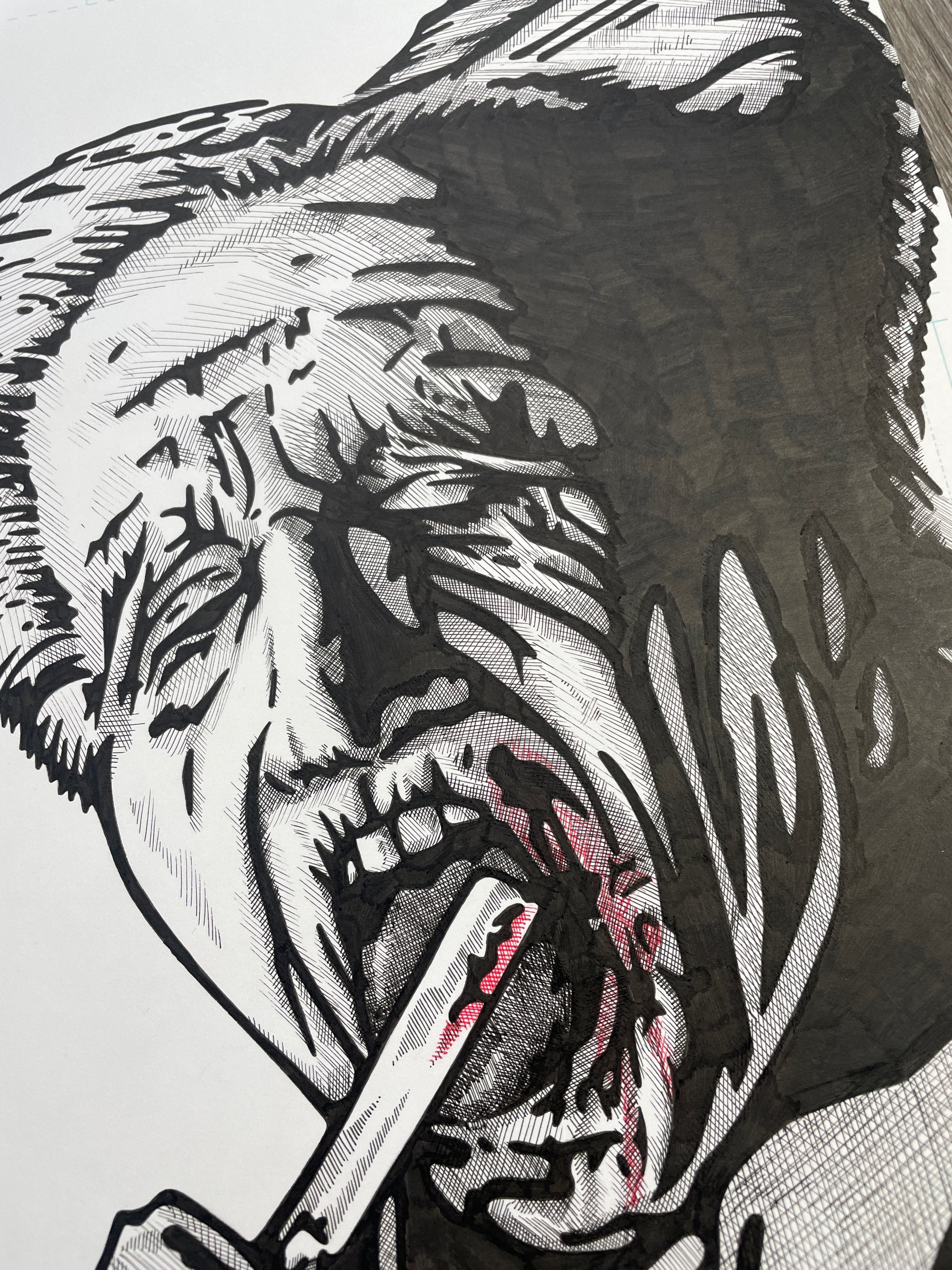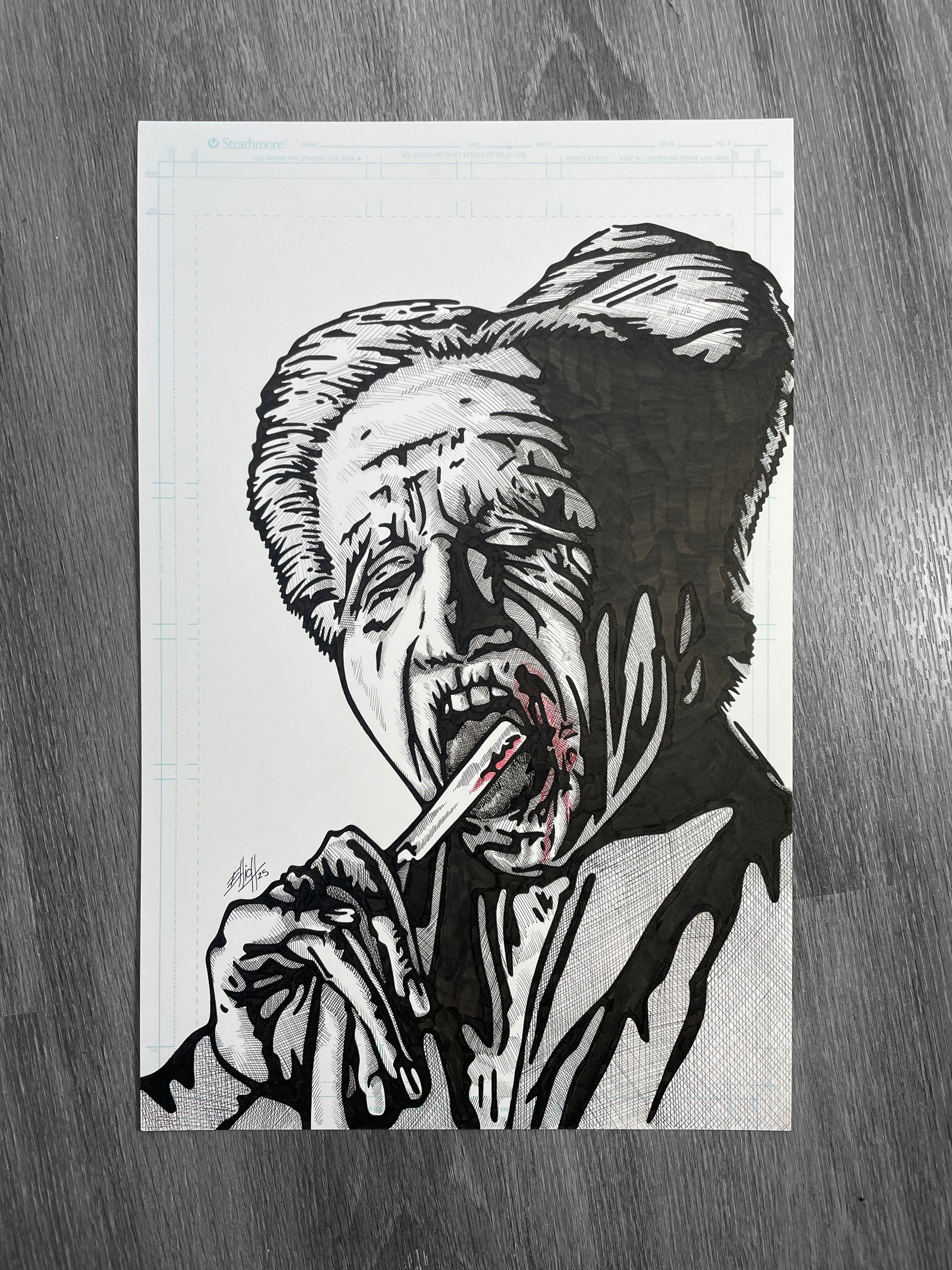 1 of 1 original art piece of Gary Oldman's Dracula done with Ink and Micron markers and red fine liner on a 11' X 17' comic art board