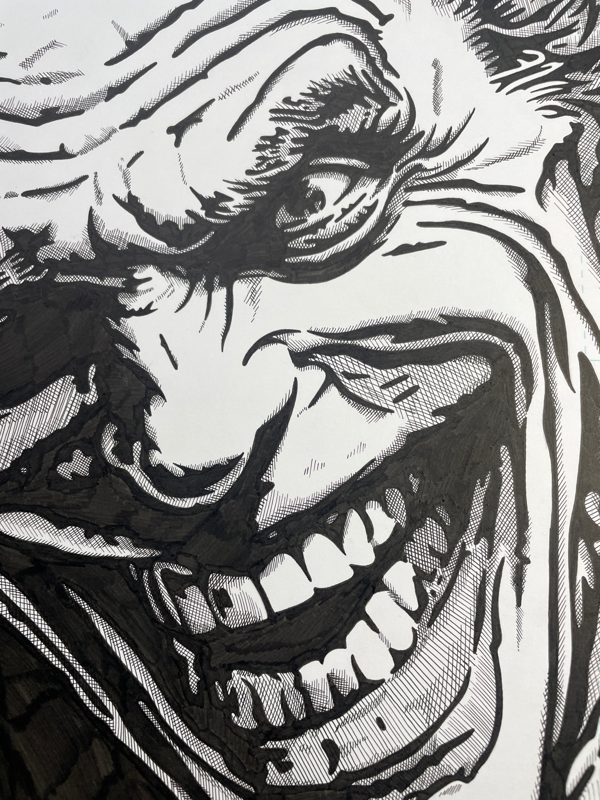 1 of 1 original art piece of The Joker done with Ink and Micron markers on a 11' X 17' comic art board