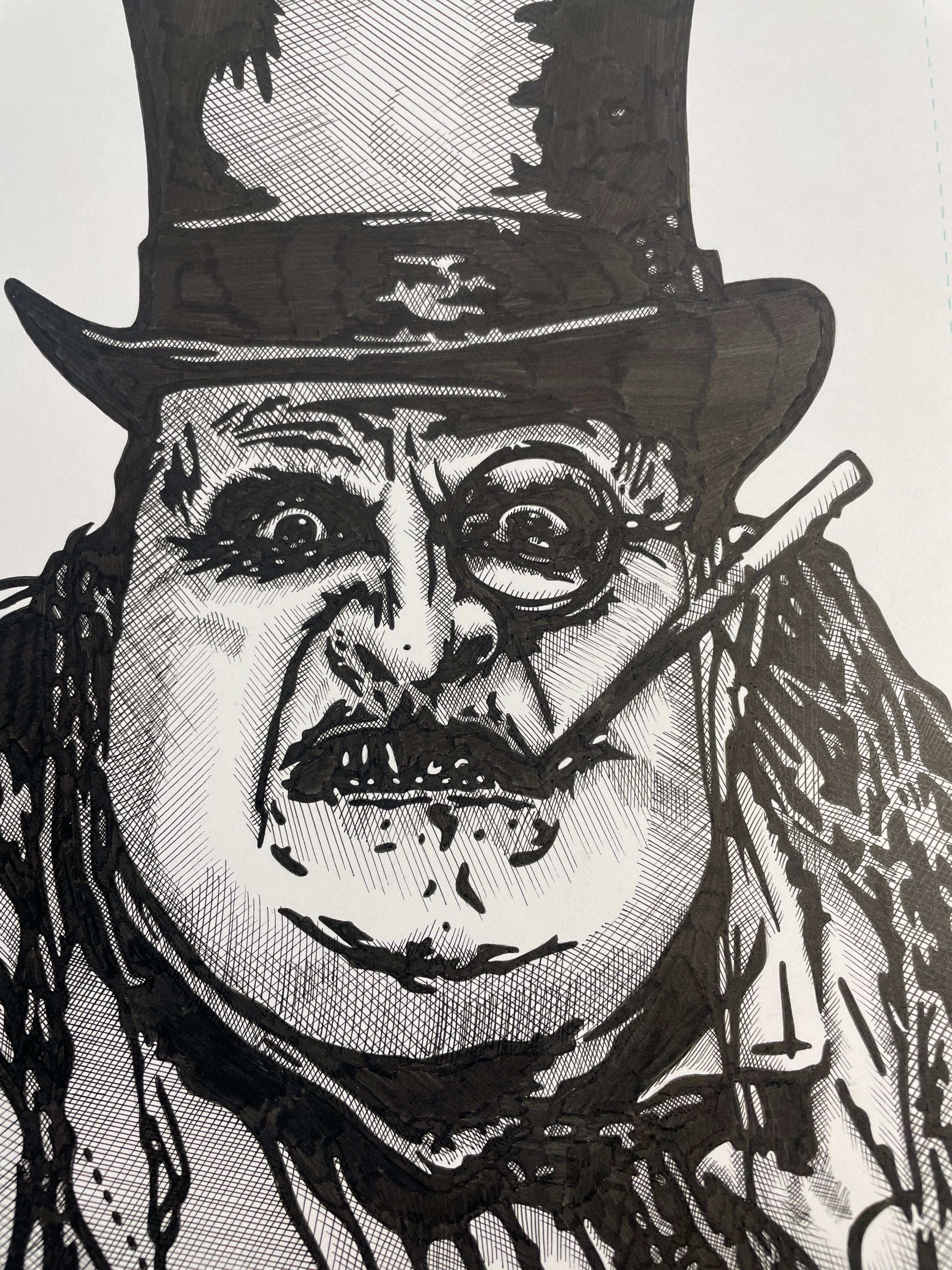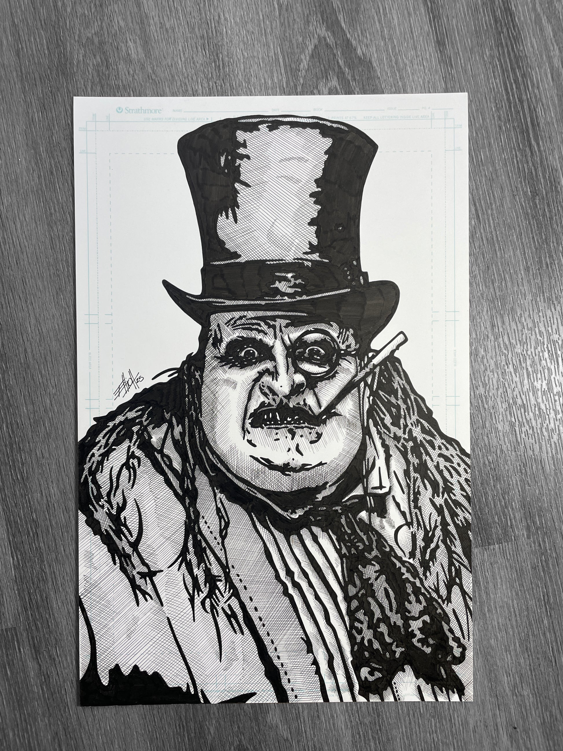 1 of 1 original art piece of Danny DeVito Penguin done with Ink and Micron markers on a 11' X 17' comic art board